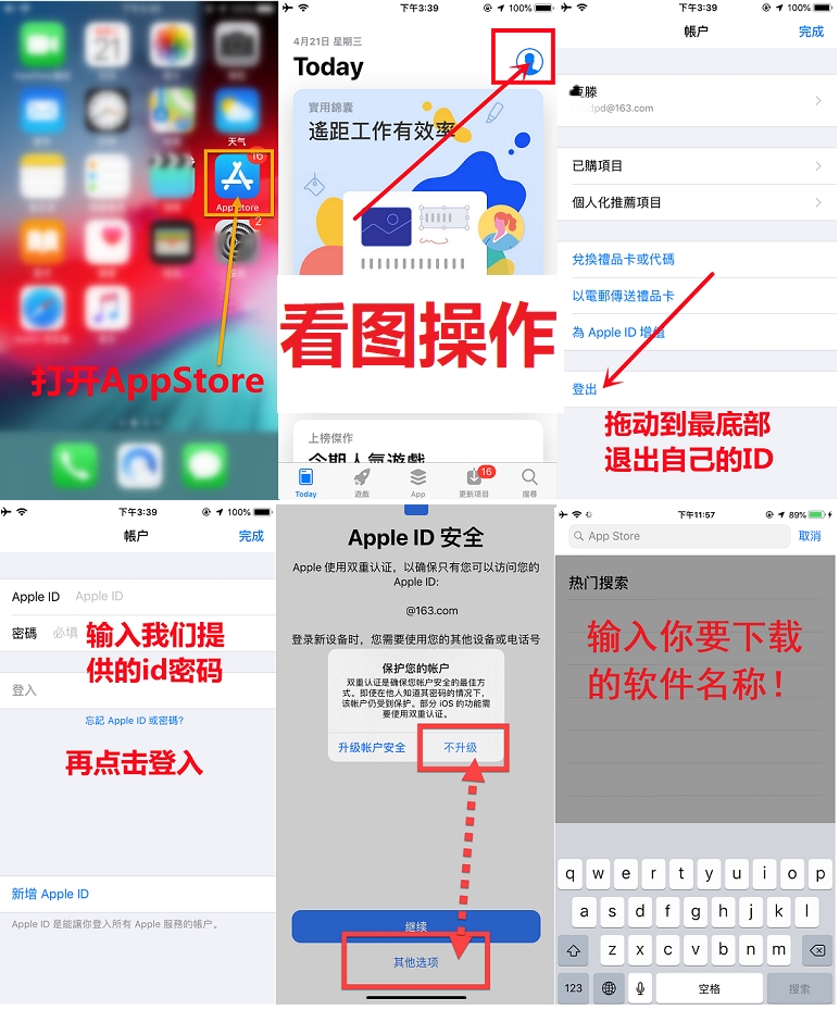 安装完成可正常打开app后 打开手机App Store 退出共享账号,安装完成后不再需要Appe ID,所以请不要保留在手机登录。
