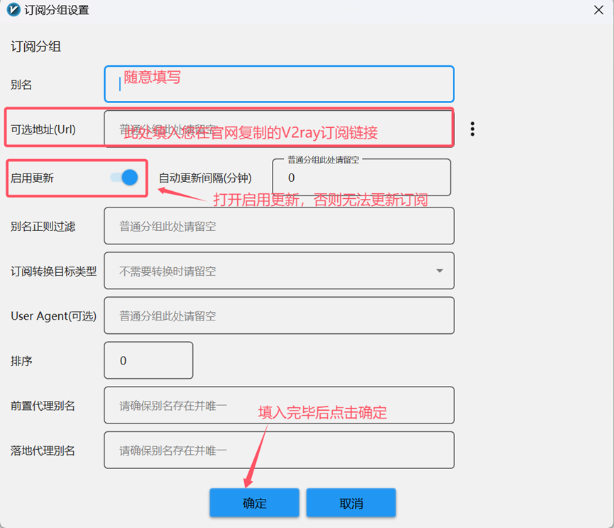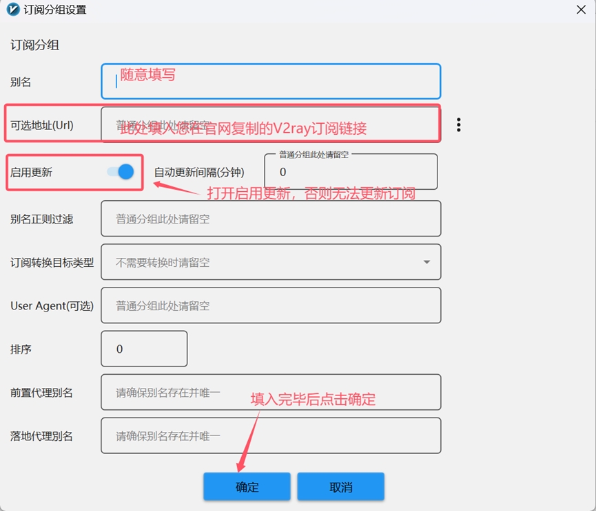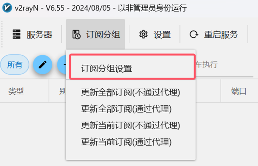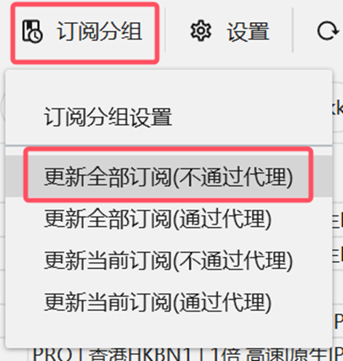 点击主界面的订阅-更新订阅,等待几秒钟即可。